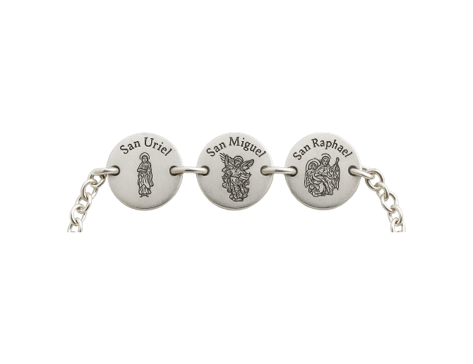 Una pulsera rezada y bendecida por una meiga gallega, donde sus oraciones y bendiciones se introducen en tres arcángeles Miguel para la protección, Uriel para proteger el dinero y Rafael para la salud.