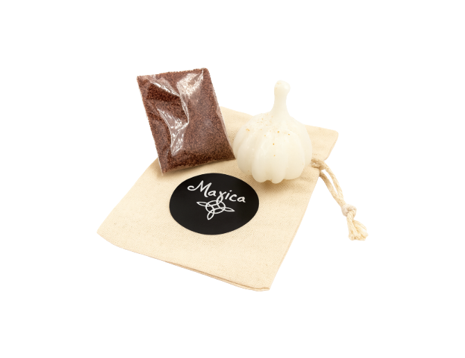 • Coloca la vela de cebolla en el centro del círculo de sal negra.