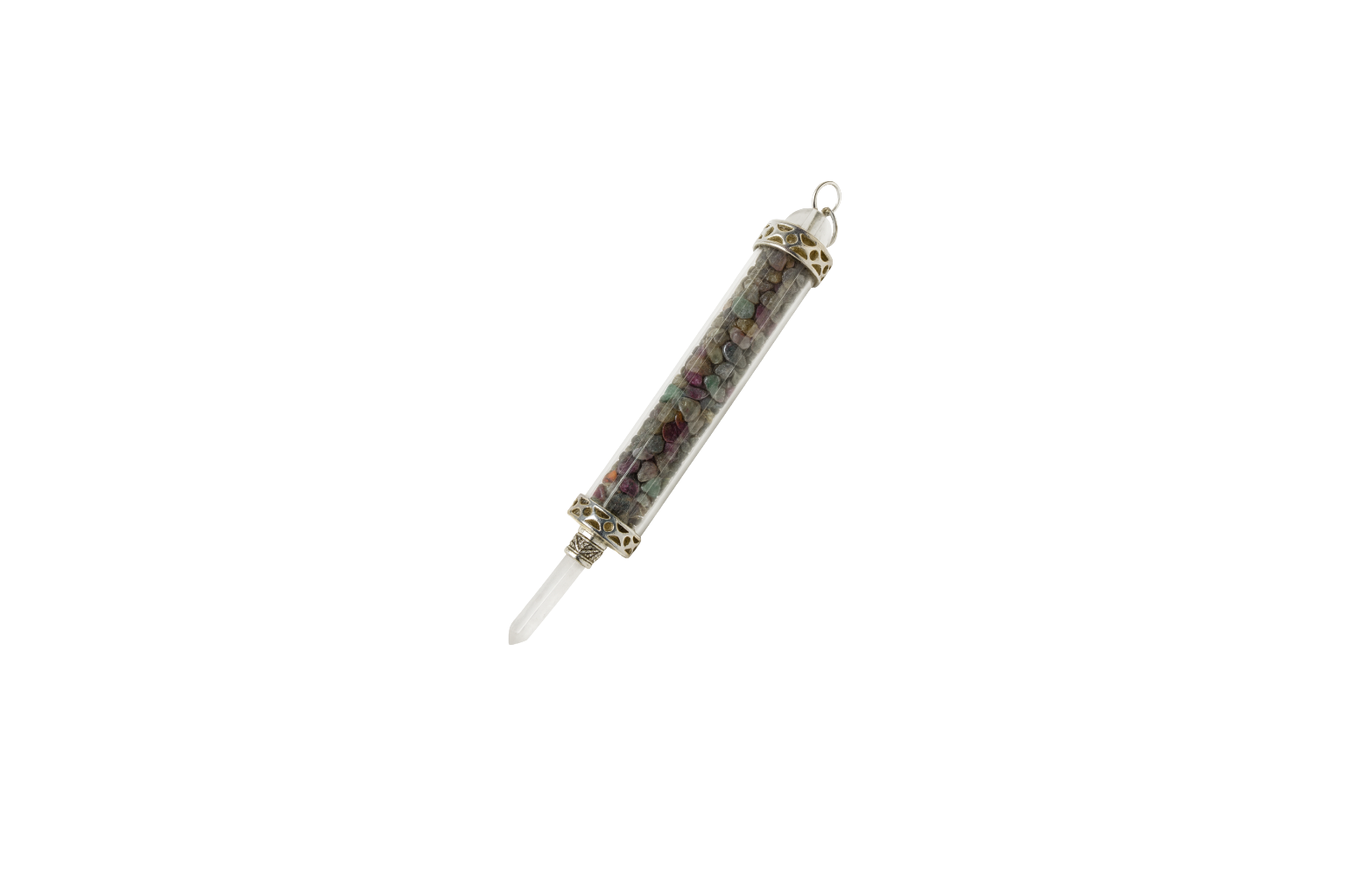 Esta es una varita de poder con turmalina sandía, compuesta por pequeños fragmentos de este mineral tan increíble y una punta de cuarzo que ayuda a canalizar la energía.